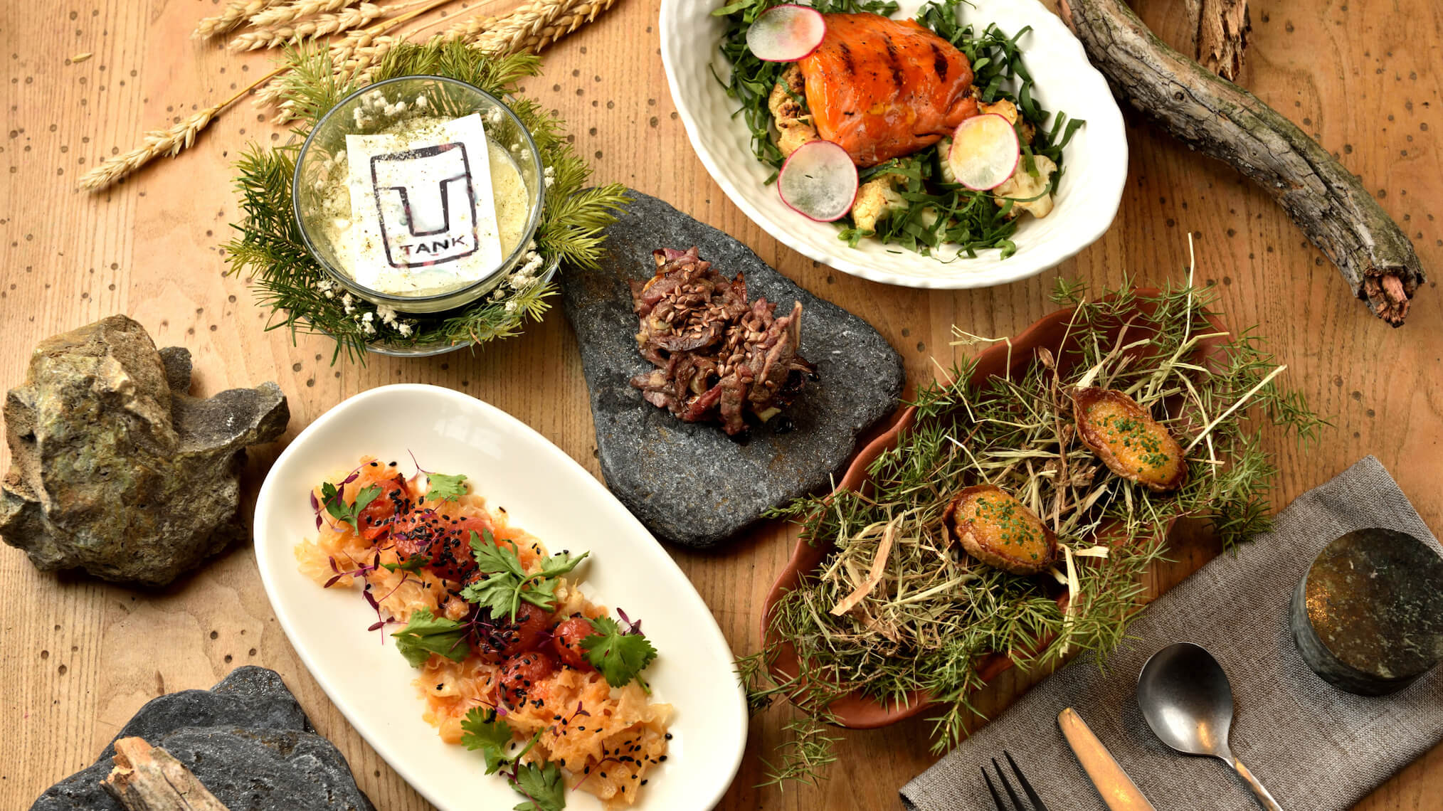Гастро-сет, состоящий из пяти блюд, будет доступен для любого посетителя ресторана. Кулинарные решения сочетают в себе самые разные текстуры и вкусы, а новизну и уникальность блюдам придают искусно расставленные азиатские акценты. Сет TANK Gourmet включает в себя: картофельную корочку с маринованной икрой северных рыб, битые томаты с коралловым грибом, френч тост с рибаем и азиатским луком BBQ, форель в устричной глазури из цитрусов с обожженной капустой, сезонным десерт с травами.